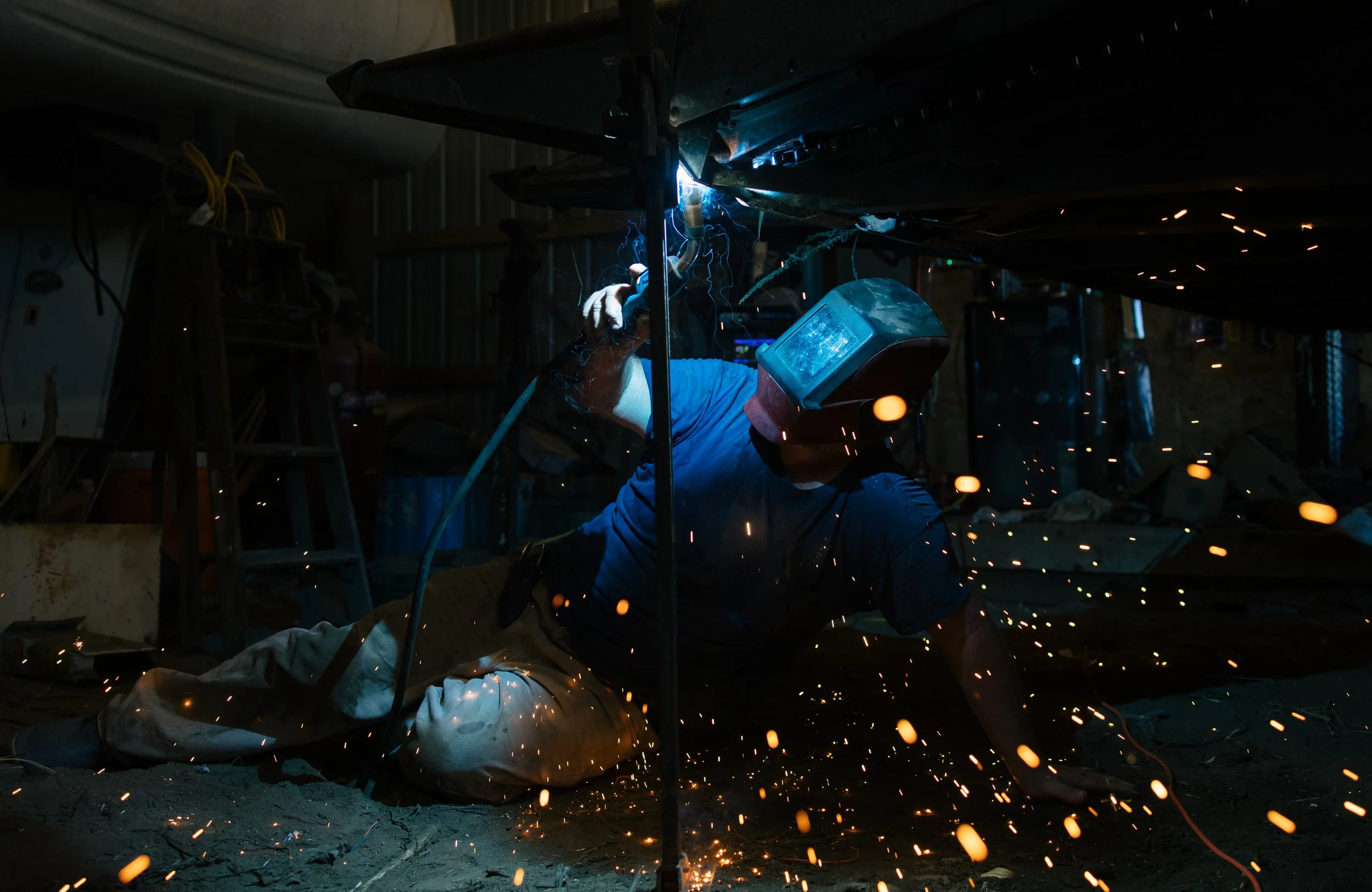 On a crisp, bright afternoon in early October, Ethan watched his father weld their broken 1980s combine harvester head, which cuts and threshes corn.