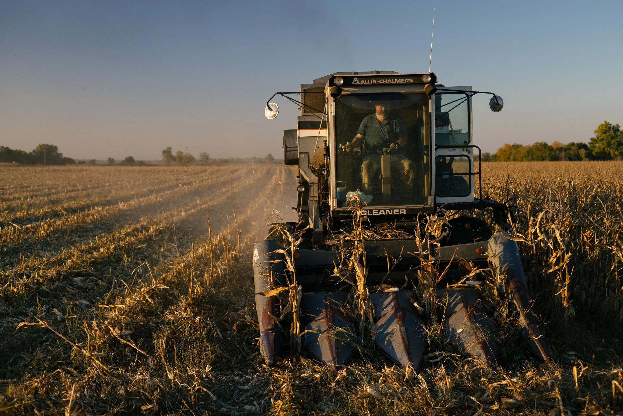 Jeff Uhlir harvests corn on his farm in Knox County.