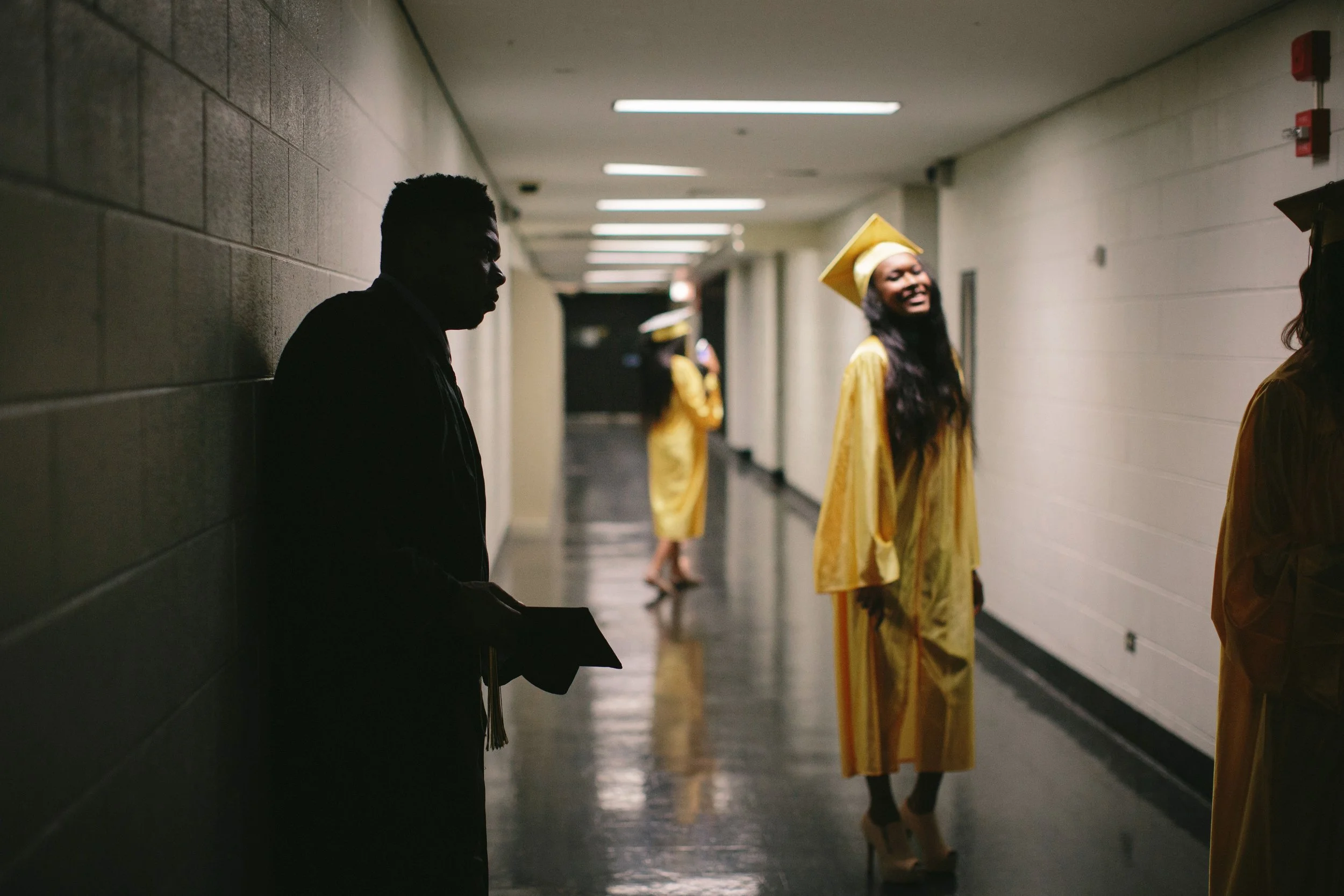 Travis Widdington waits backstage before graduating with his 65 classmates from Orr High School.
