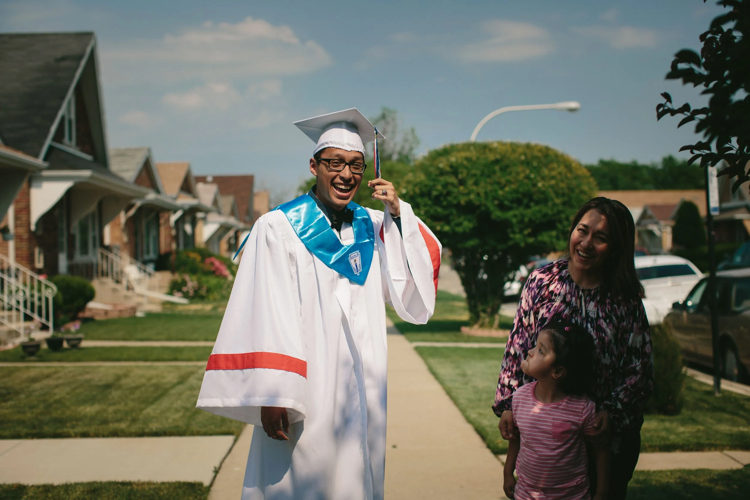 Lilia Chavez celebrates her son Cesar Chavez Jr. during his graduation from UIC College Preparatory High School. “I was feeling very emotional,” Lilia Chavez said. “He’s come a long way.” Cesar Chavez, who graduated on the High Honor Roll, received a full ride to attend Washington University in St. Louis and is considering a degree in journalism, communications or education.